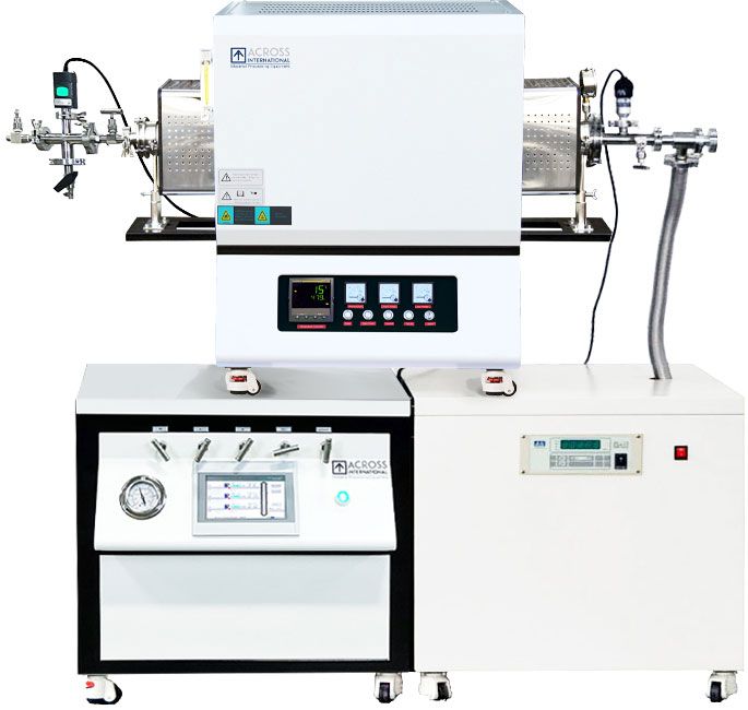 TF1700 series Chemical Vapor Deposition (CVD) tube furnaces feature a chamber with Mitsubishi (Japan) alumina fiber insulation and molybdenum silicide heating elements. A double walled steel internal housing helps minimize heat loss to exterior surface.