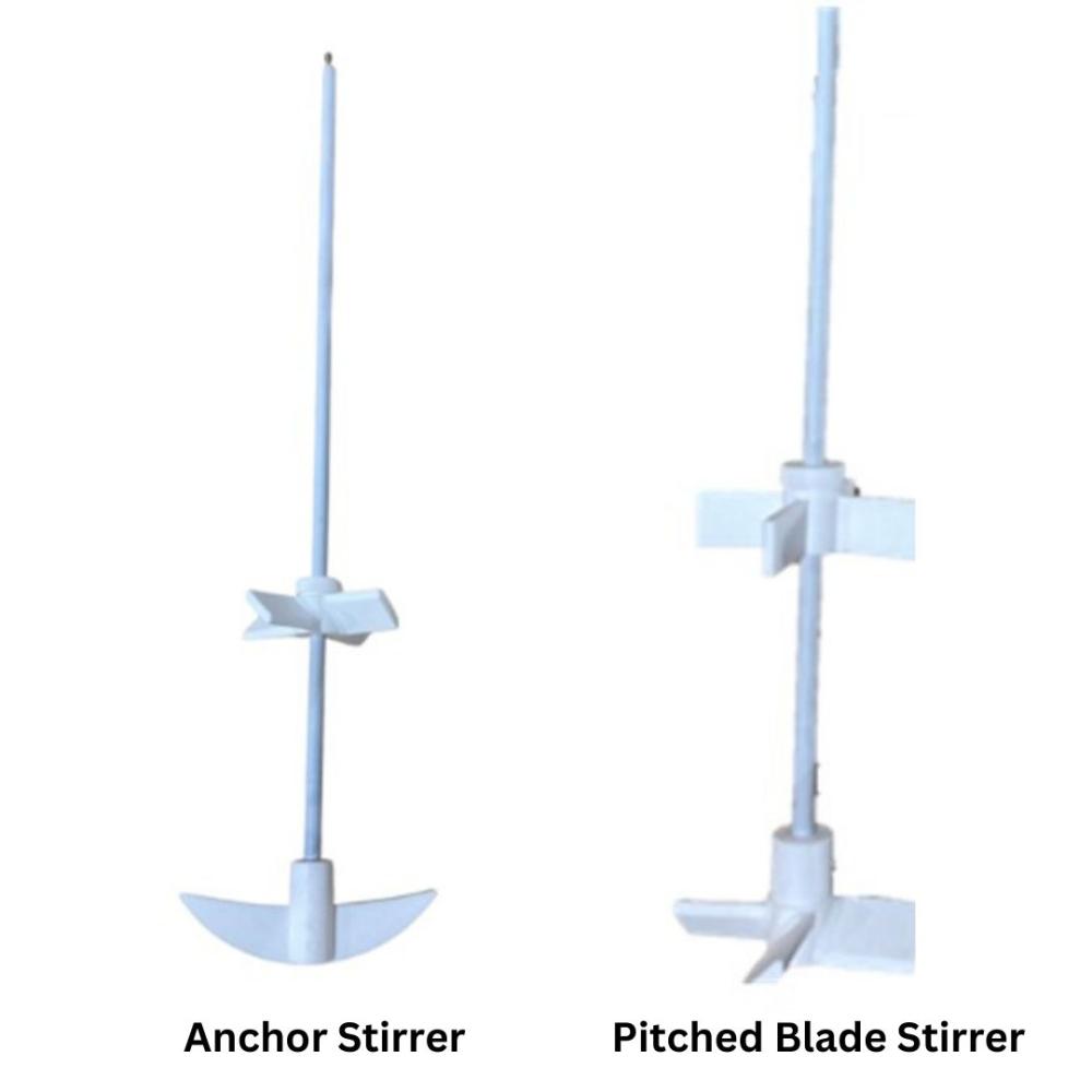 - Rugged stainless steel reinforced PTFE stirrer with anchored agitator, suitable for a wide range of viscous materials.
