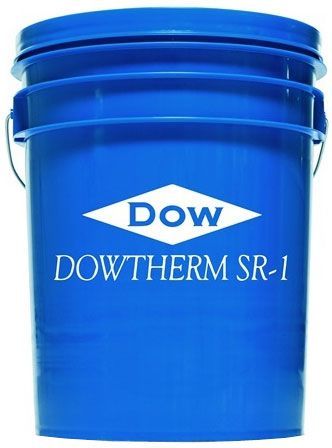 Dowtherm SR-1 heat transfer fluidis a formulation of 95.5 weight percent ethylene glycol and a specially designed package of industrial corrosion inhibitors. The fluid is dyed fluorescent pink for leak detection purposes. Solutions of this in water provide freeze protection to below -50C (-60F) and burst protection to below -73C (-100F). It is widely used within the HVAC industry or wherever low freezing water based heat transfer fluids are needed.
